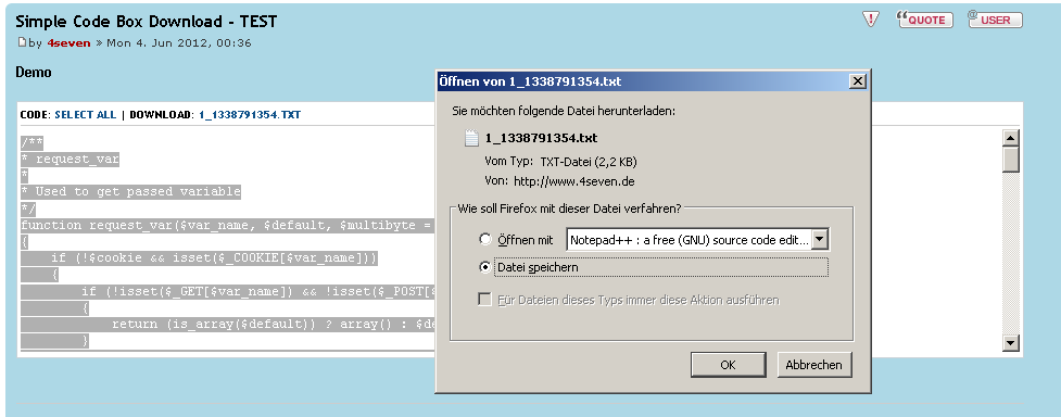 MOD-Description: Provides a txt download link of codebox content after clicking [SELECT ALL]