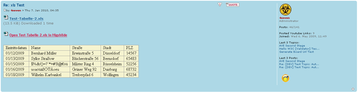 - XLS (MS Excel) Attachments werden im Post dargestelllt